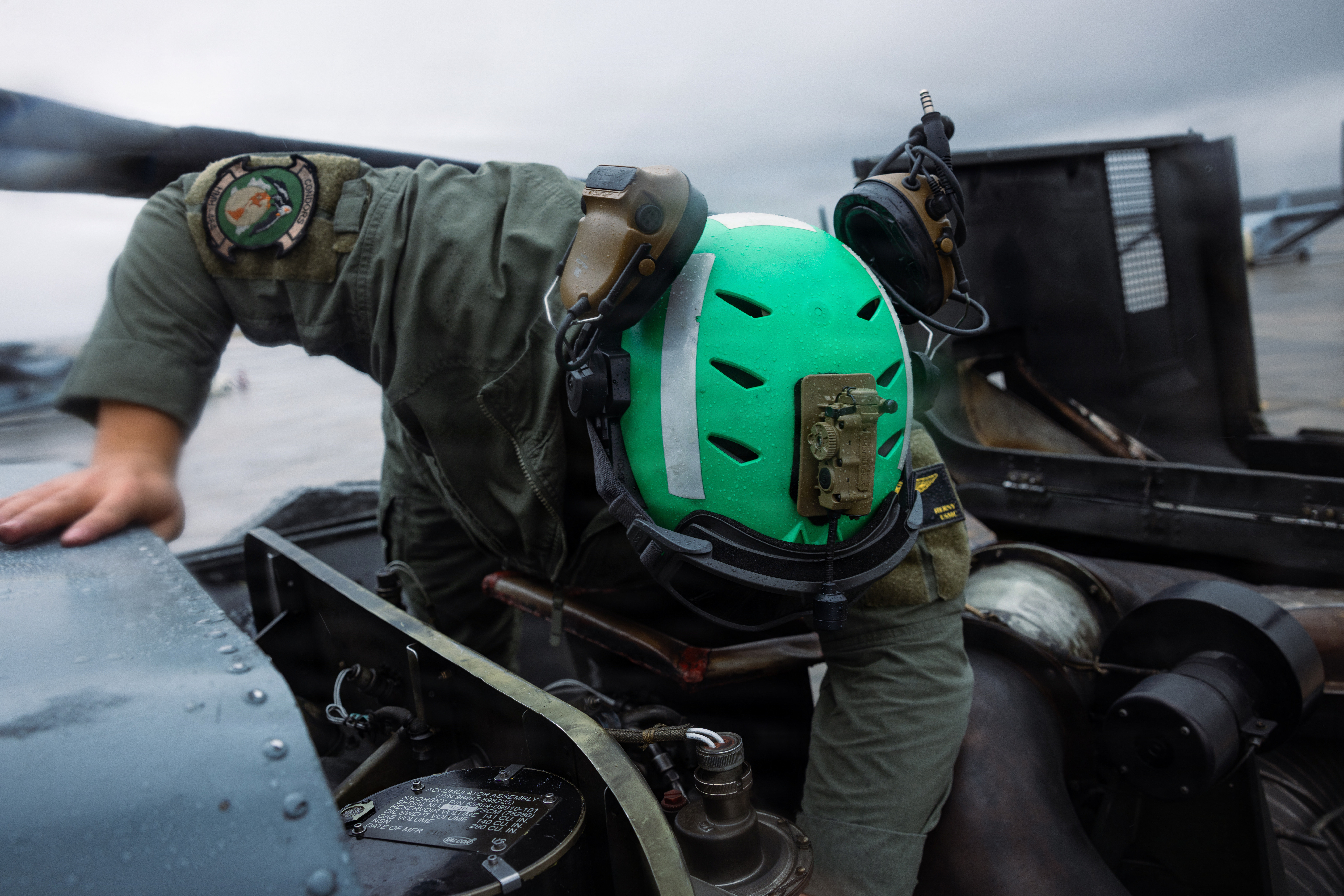 JACKSONVILLE, NORTH CAROLINA, UNITED STATES - U.S. Marine Corps Sgt. Jake Herny, flight equipment mechanic, Marine Heavy Helicopter Squadron (HMH) 464, Marine Aircraft Group 29, 2nd Marine Aircraft Wing, inspects a CH53E Super Stallion helicopter on Marine Corps Air Station New River, in Jacksonville, North Carolina, Oct. 28, 2025. HMH-464’s mission is to provide assault support transport of heavy equipment, troops and supplies in all weather conditions during expeditionary, joint or combined operations. (U.S. Marine Corps photo by Cpl. Loriann Dauscher)